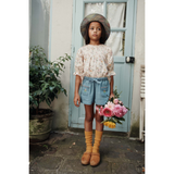 Tinyapple | SS26 Emile et Ida | Short with Pink Embroidery, Light Denim