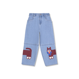 Tinyapple | SS26 Wynken | Feline Wrapped Jean, Mid Washed Denim Cats