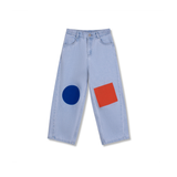 This pale blue denim jean with blue and red shapes on the knees feels soft, breathable, and perfect for all-day play and summer adventures. The playful shapes bring fun and personality to every outfit, while the stitched red Wynken badge on the back pocket adds a subtle signature touch. With a tapered fit and hidden adjustable waistband, these jeans move with little ones as they climb, run, and play, keeping comfort and practicality front and centre.