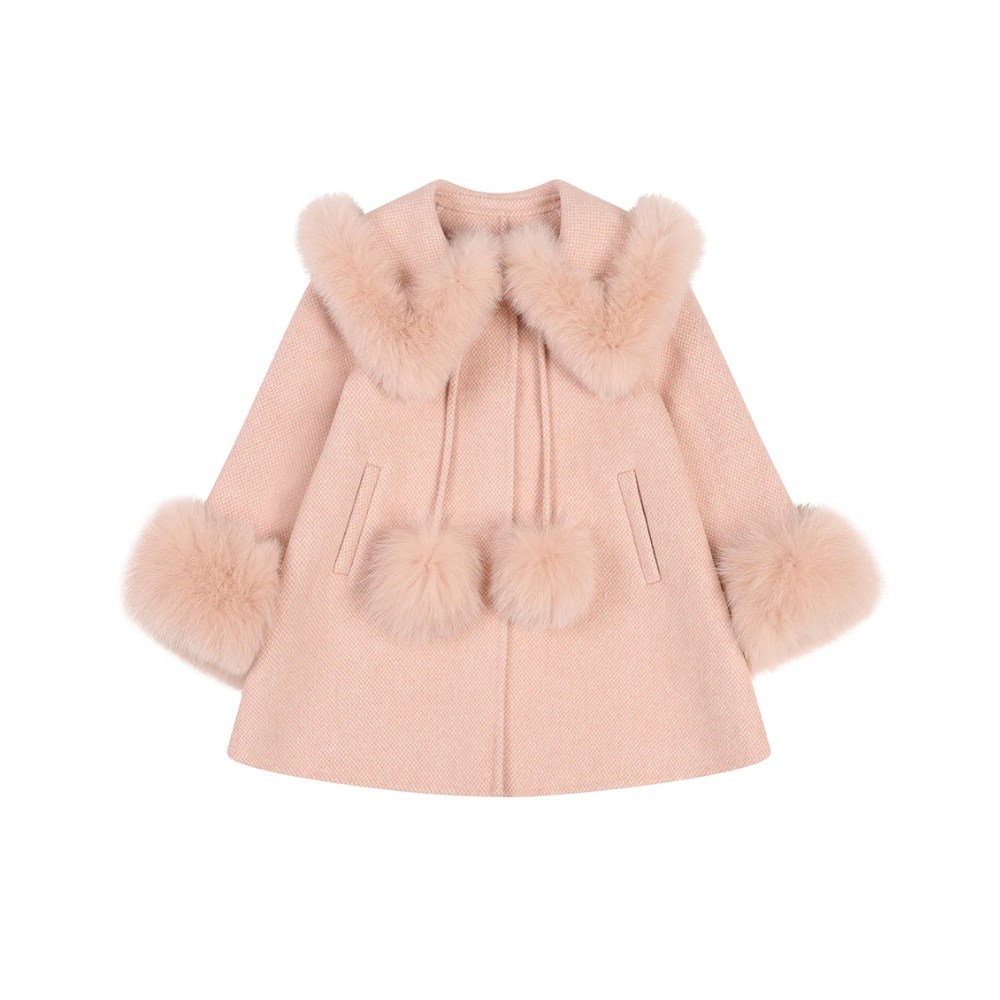 | Tinyapple | FW24 | Bobble Babies Cashmere Coat with Pom-poms, Blush |