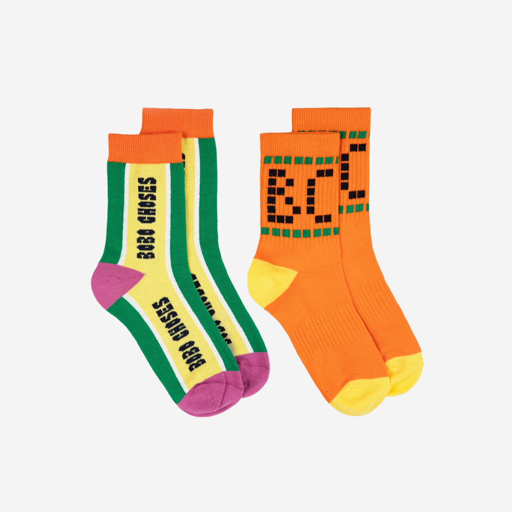 Tinyapple | SS26 Bobo Choses | Bobo Choses short socks pack x 2, Multicolor 74% Organic Cotton ,24% Polyamide ,2% Elastane- Made in SpainWash Cold-30°Do Not BleachDo Not IronDo not Dry-cleanDo Not Tumble DryB126AI012