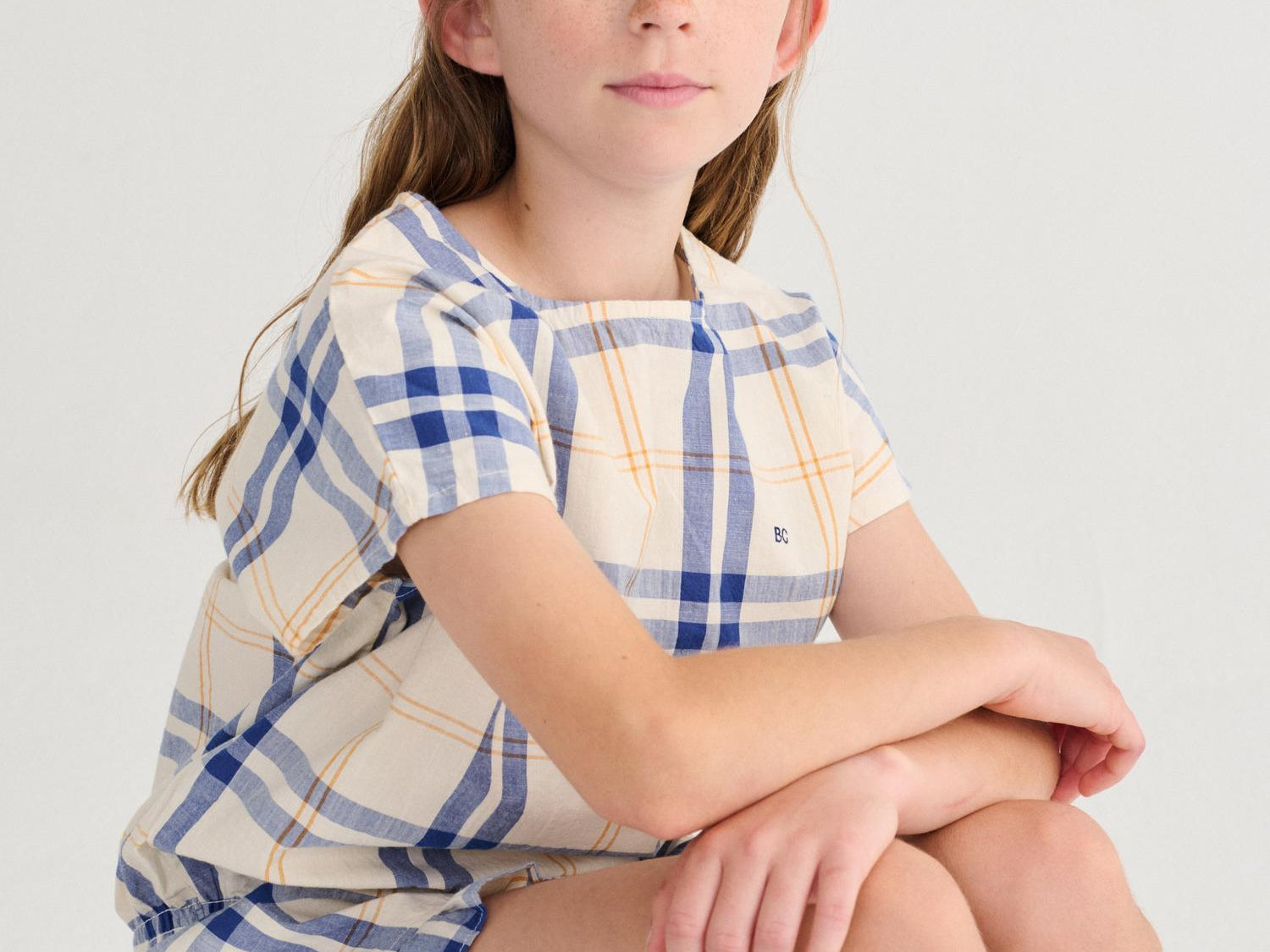 Tinyapple | SS26 Bobo Choses | Fun Tartan woven top, Off White