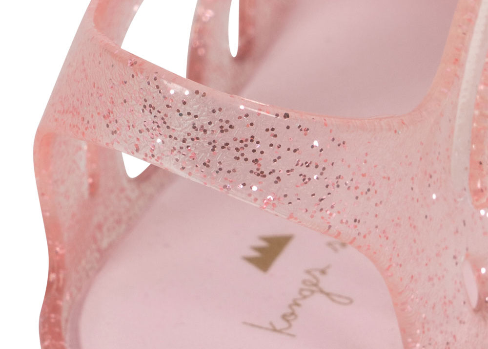 Glittery beach sandals made in PVC with a practical velcro closure that is easy for little hands to adjust. Designed with a signature Konges Sløjd cherry on top - squish gently to watch the glitter dance. Size guide: 22: 128 mm 23: 133 mm 24: 138 mm 25: 148 mm 26: 158 mm 27: 168 mm 28: 178 mm 29: 188 mm 30: 198 mm