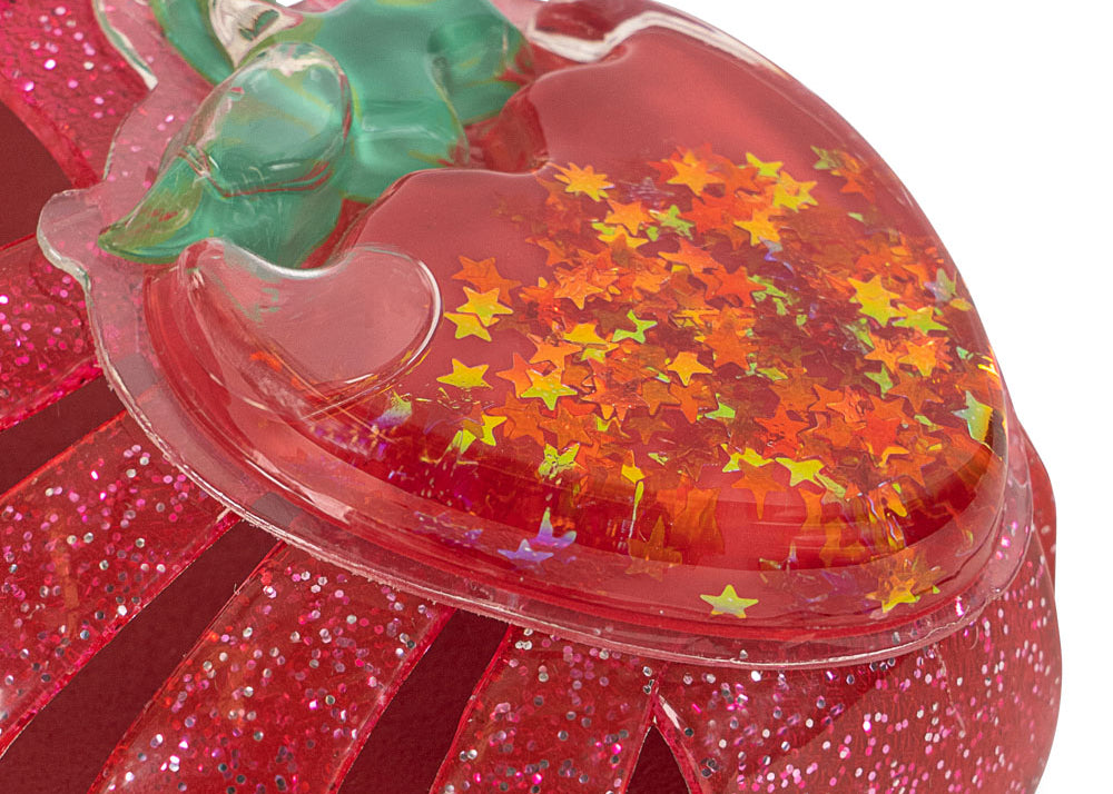 Glittery beach sandals made in PVC with a practical velcro closure that is easy for little hands to adjust. Designed with a signature Konges Sløjd cherry on top - squish gently to watch the glitter dance. Size guide: 22: 128 mm 23: 133 mm 24: 138 mm 25: 148 mm 26: 158 mm 27: 168 mm 28: 178 mm 29: 188 mm 30: 198 mm 31: 208 mm
