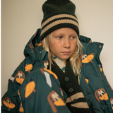 Padded and fleece-lined for extra warmth, these Dogs print snow pants are built for winter adventures. They feature a zip fly with snap closures, integrated snow gaiters with anti-slip band, and ankle zips to fit easily over ski boots. The elasticated waist with Velcro tabs ensures a perfect fit, while elastic shoulder straps add support. Reflective strips enhance safety on snowy days. Made from wind- and water-resistant fabric, ready for every chilly adventure.