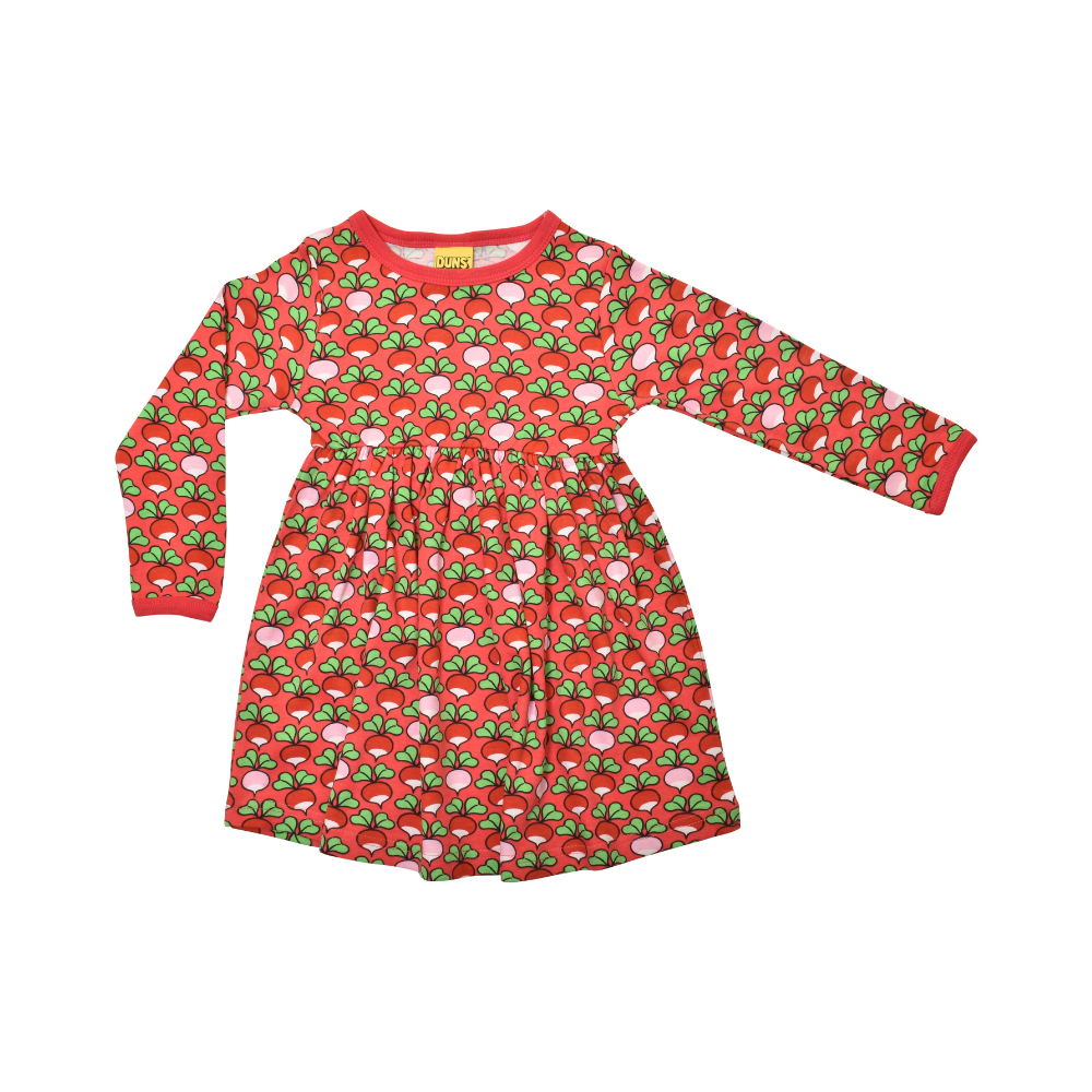 Duns L/S Gathered Dress, Multi Radish Rouge Red