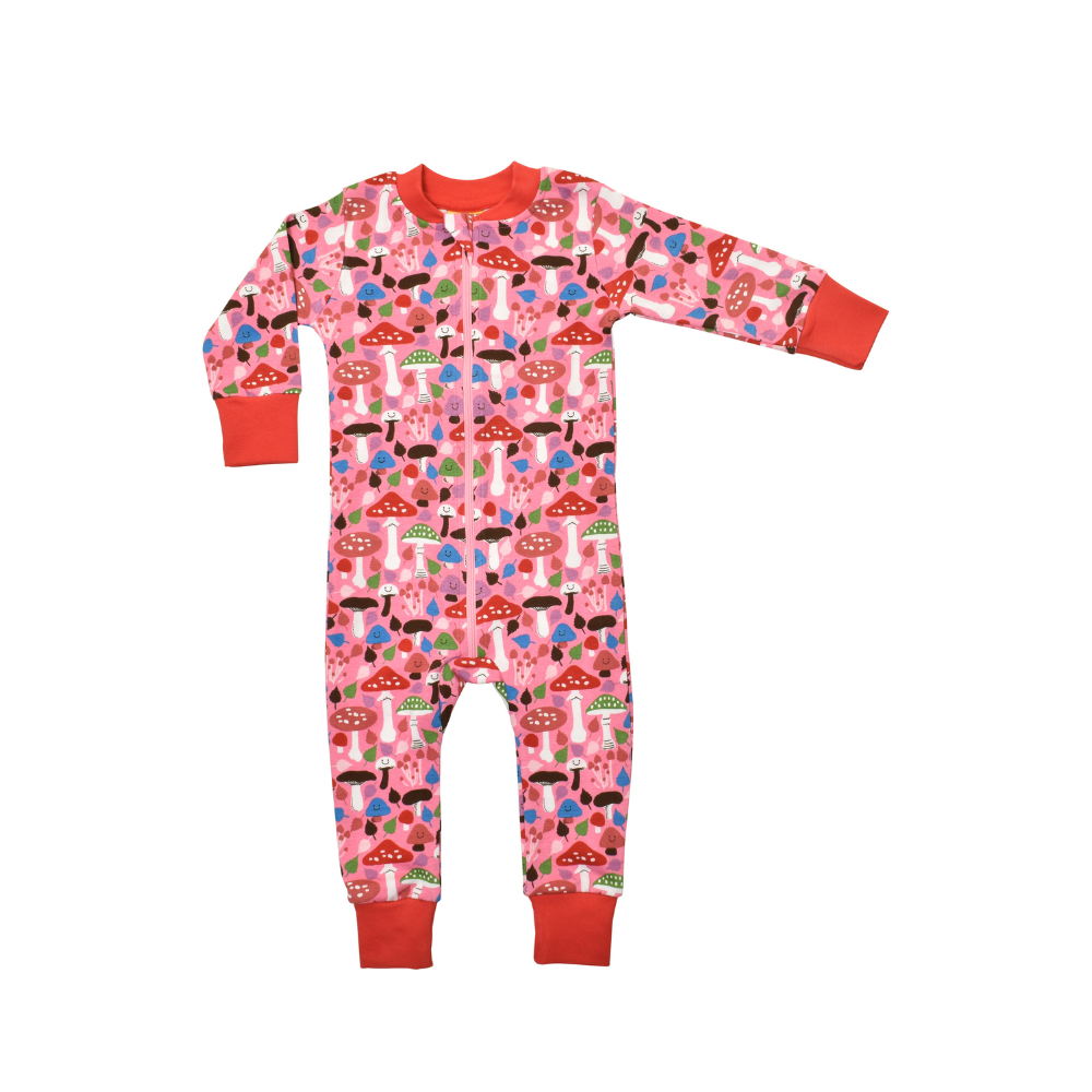 Duns Long Sleeve Long Leg Zipsuit, Pink Mushroom