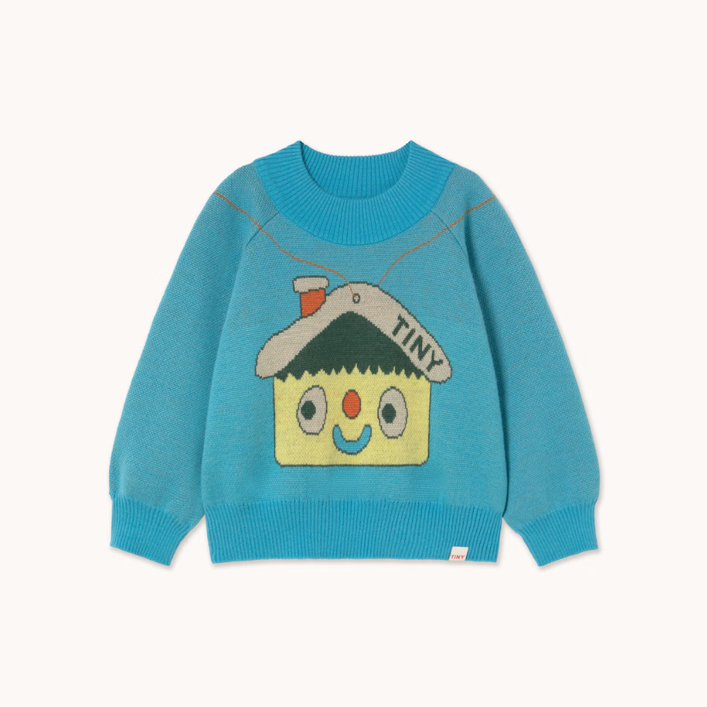 Tinycottons Smiley Cottage Sweater, Light Cyan
