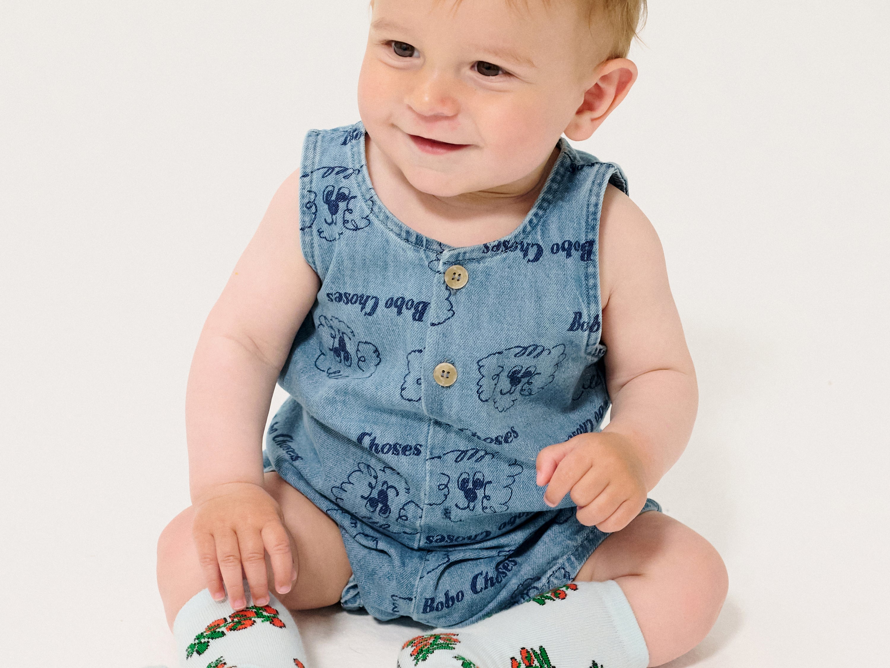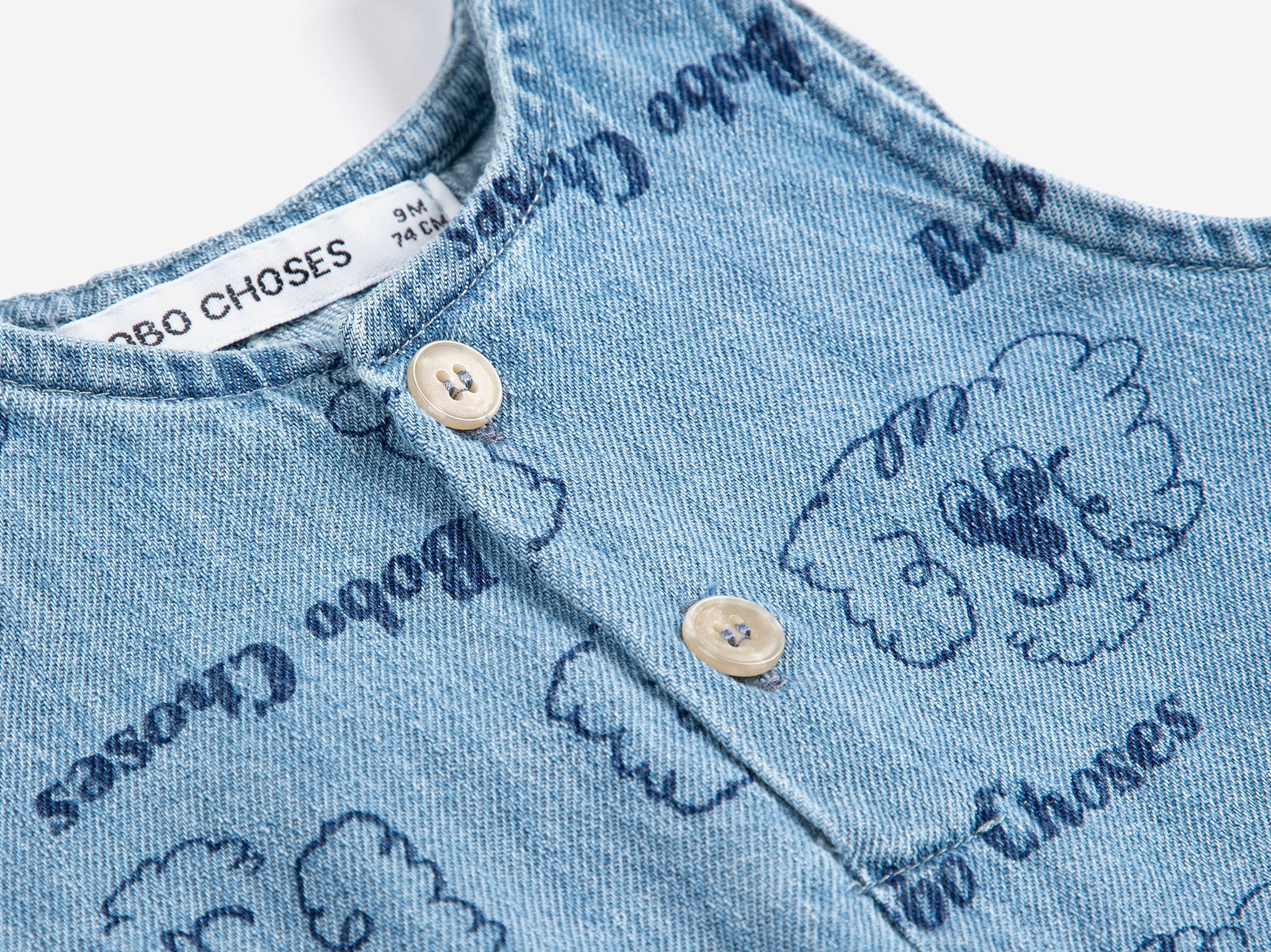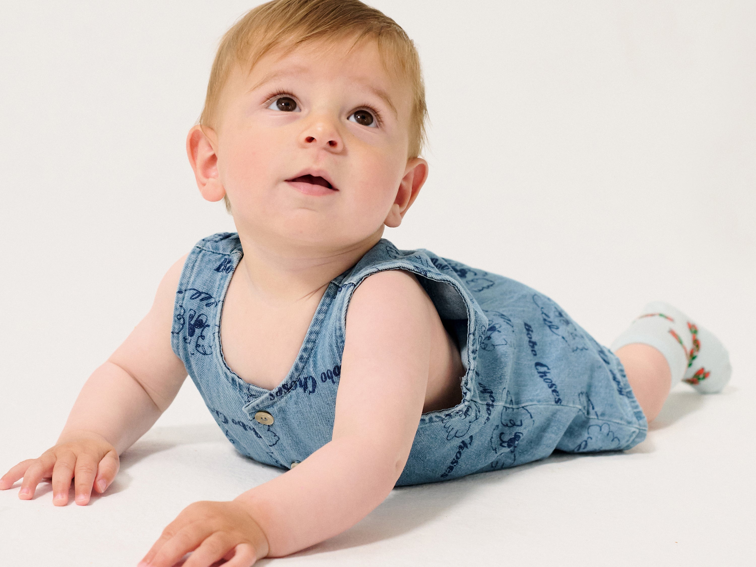 Tinyapple | SS26 Bobo Choses | Baby Pickles The Dog all over denim playsuit, Light Blue