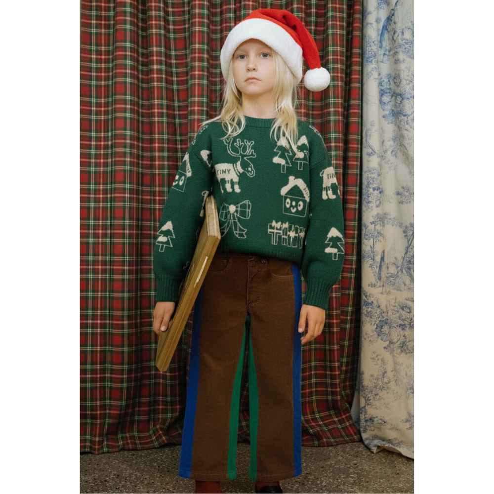| TINYAPPLE | FW25 CAPSULE TINYCOTTONS | Holiday Tiny Town Sweater, Dark Green